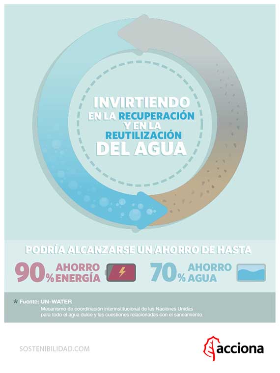 Y es que podría alcanzarse un ahorro de hasta el 90 % en energía y del 70 % en agua invirtiendo en su recuperación y reutilización, reciclando las aguas residuales procedentes de la industria y del uso municipal para ser utilizadas como aguas industriales o de refrigeración.
