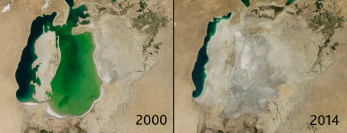 La desertificación es uno de los mayores retos medioambientales a los que se enfrenta el planeta, ese proceso por el que la tierra que que era fértil poco a poco se va convirtiendo en improductiva a causa de la tala indiscriminada, la sobreexplotación de la tierra y, cómo no, de nuevo, del calentamiento global. Según Naciones Unidas, más de 24 billones de toneladas de suelo fértil desaparecen cada año y dos tercios de la Tierra se encuentran en proceso de desertificación. #10yearschallenge, en este caso #14yearschannel, la imagen muestra la degradación del mar de Aral, en Asia Central. La UICN ya ha catalogado este ecosistema como irrecuperable, y es que ha pasado de ser el cuarto lago más grande del mundo a no estar ni siquiera entre los veinte primeros.