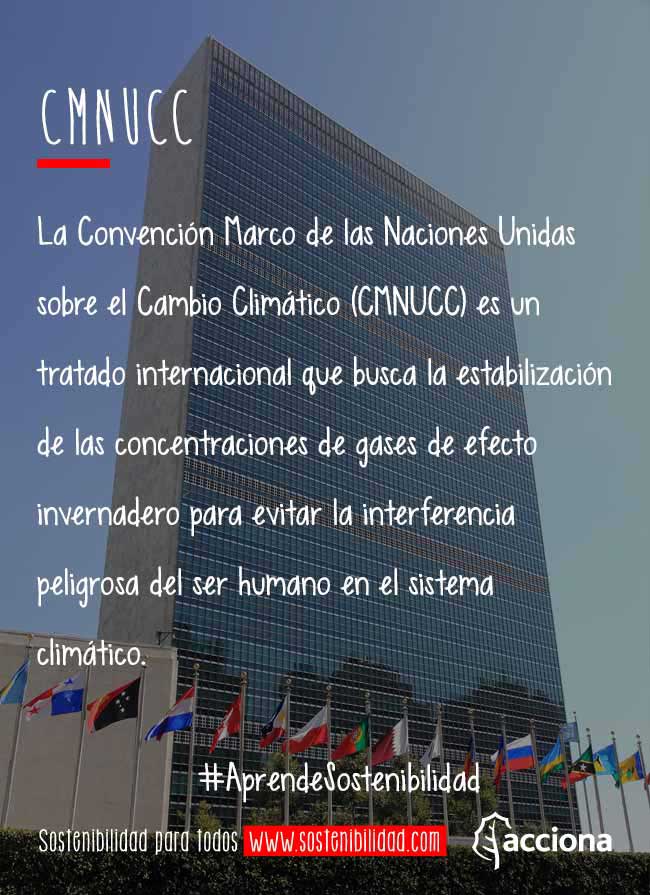 La Convención Marco de las Naciones Unidas sobre el Cambio Climático (CMNUCC) es un acuerdo internacional que se adoptó en 1992, aunque entró en vigor en 1994, para reconocer oficialmente la incidencia de la acción humana sobre el calentamiento global y tratar de proponer soluciones comunes.