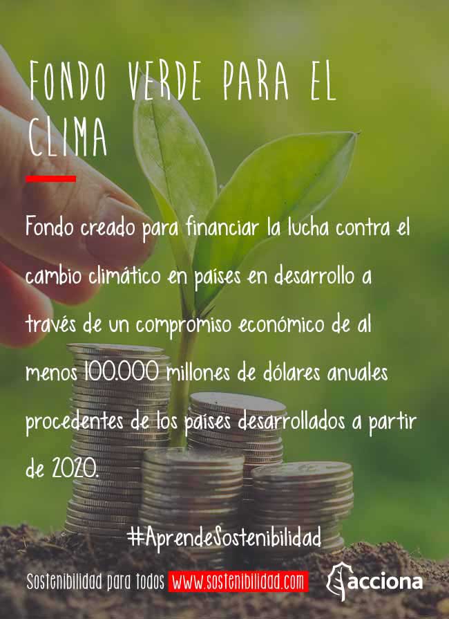Uno de los principales logros de la Conferencia de las Partes de Durban (COP17, 2011) fue la creación del Fondo Verde para el Clima (FVC). Mediante este acuerdo, los países desarrollados se comprometen a aportar una cantidad económica de al menos 100.000 millones de dólares al año, a partir de 2020, para ayudar a los países en desarrollo, especialmente los estados insulares, a combatir los efectos del cambio climático.