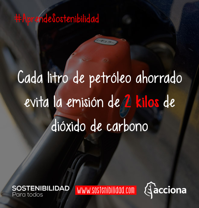 ¿Sabías que por cada litro de petróleo ahorrado se evita la emisión de 2 kilos de dióxido de carbono?