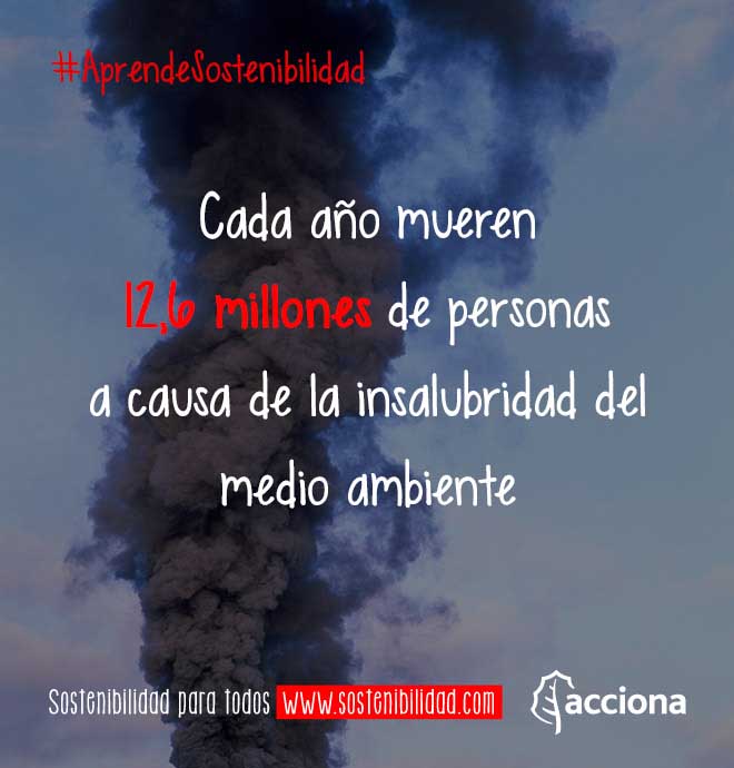 La contaminación del medio ambiente no supone únicamente la destrucción de la flora y la fauna, sino que también perjudica gravemente al ser humano. La Organización Mundial de la Salud alerta de que cada año 12,6 millones de personas mueren a causa de la insalubridad del medio ambiente.