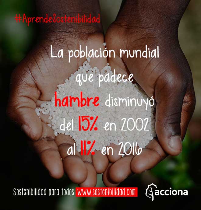 Aunque todavía hay casi 800 millones de personas que pasan hambre en el mundo, la cifra se ha visto reducida en los últimos años. La población mundial que padece hambre disminuyó del 15% al 11% entre los años 2002 y 2016.