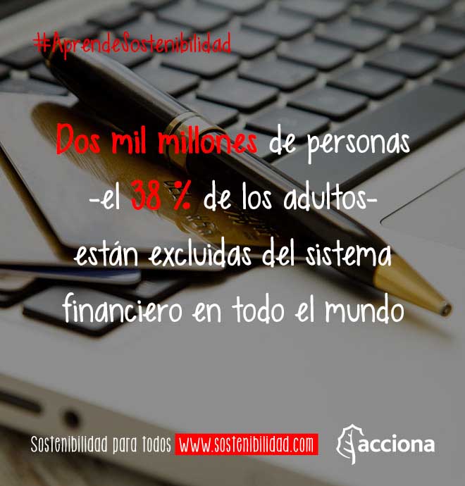 Se calcula que alrededor de dos mil millones de personas en todo el mundo, o lo que es lo mismo, el 38 % de los adultos, están excluidos del sistema financiero, lo que lasta su desarrollo económico y social.