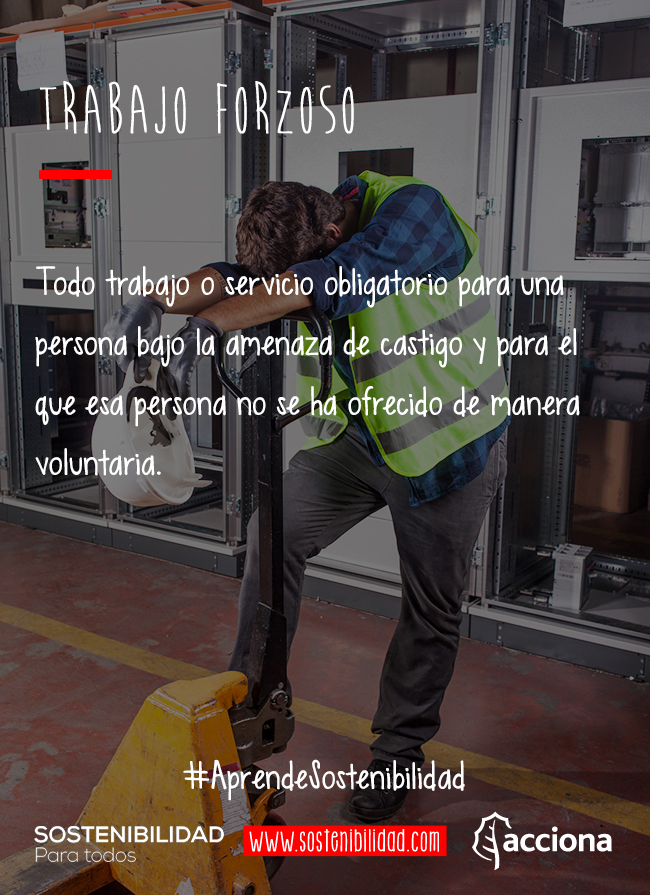 Se conoce como trabajo forzoso todo trabajo o servicio obligatorio para una persona bajo la amenaza de castigo y para el que esa persona no se ha ofrecido de manera voluntaria.