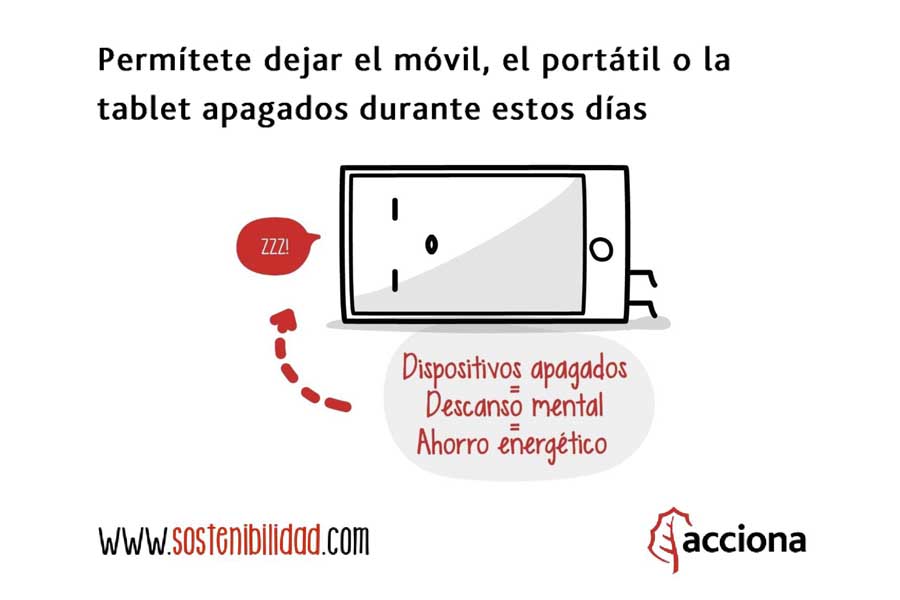 El móvil, el ordenador o la tablet nos tienen esclavizados durante buena parte del año. Cuando por fin nos vamos de vacaciones se supone que es para tomarnos un respiro del trabajo. Y no será un descanso total a menos que desconectemos totalmente de correos electrónicos, informes y fechas de reuniones. Dispositivos apagados = descanso mental = ahorro energético.