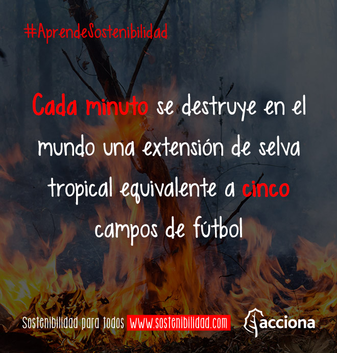 Según se recoge en un informe de la organización conservacionista Forest Trends, cada minuto se destruye en el mundo una extensión de selva tropical equivalente a cinco campos de fútbol.