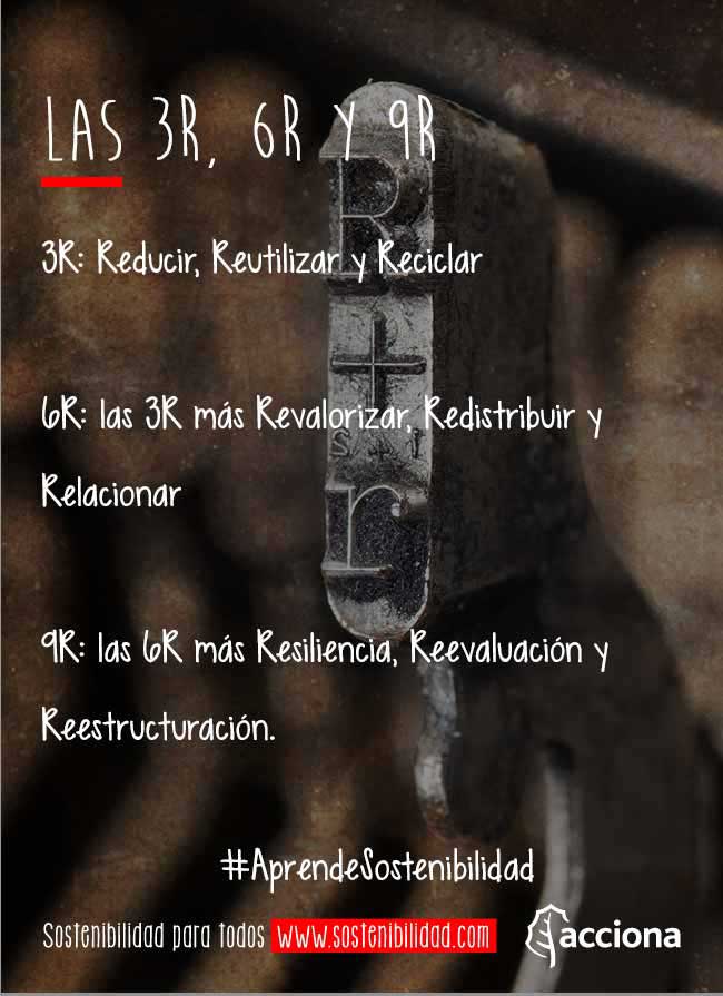 En la educación ambiental existe una regla conocida como las tres erres que sintetiza de manera sencilla una serie de pautas para colaborar en la lucha a favor del cuidado medioambiental: reducir el consumo al mínimo necesario, reutilizar aquello que todavía se pueda usar y reciclarlo convirtiendo el residuo en recurso para una nueva vida.