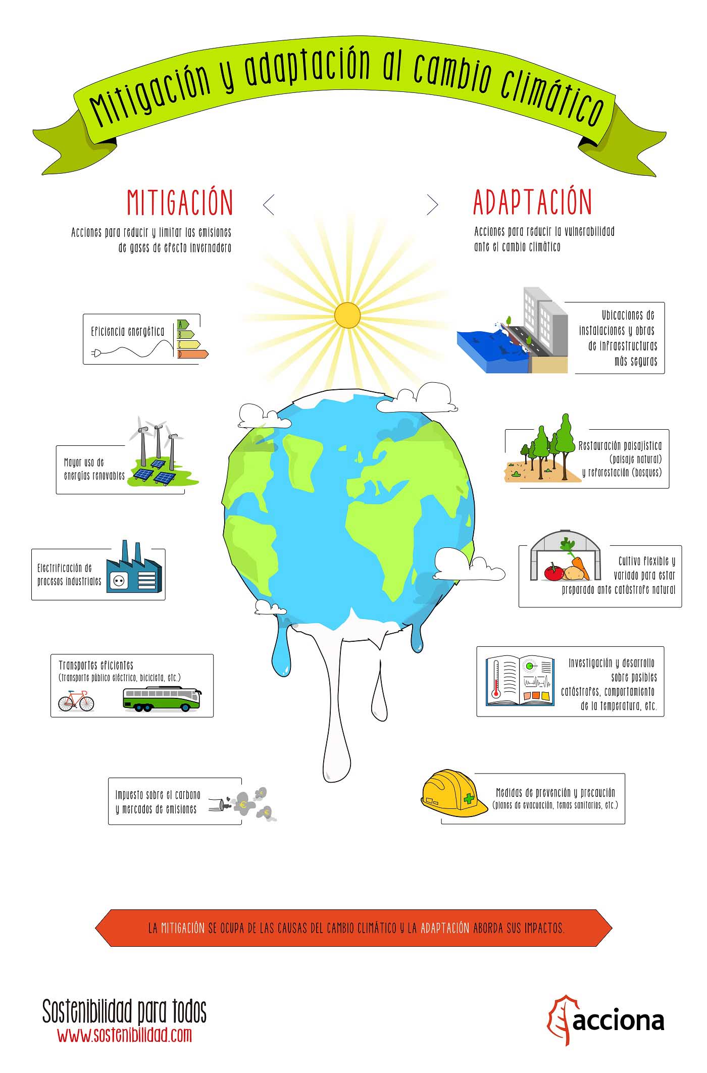 En esta infografía puedes comprobar cuáles son las medidas de adaptación y mitigación al cambio climático.