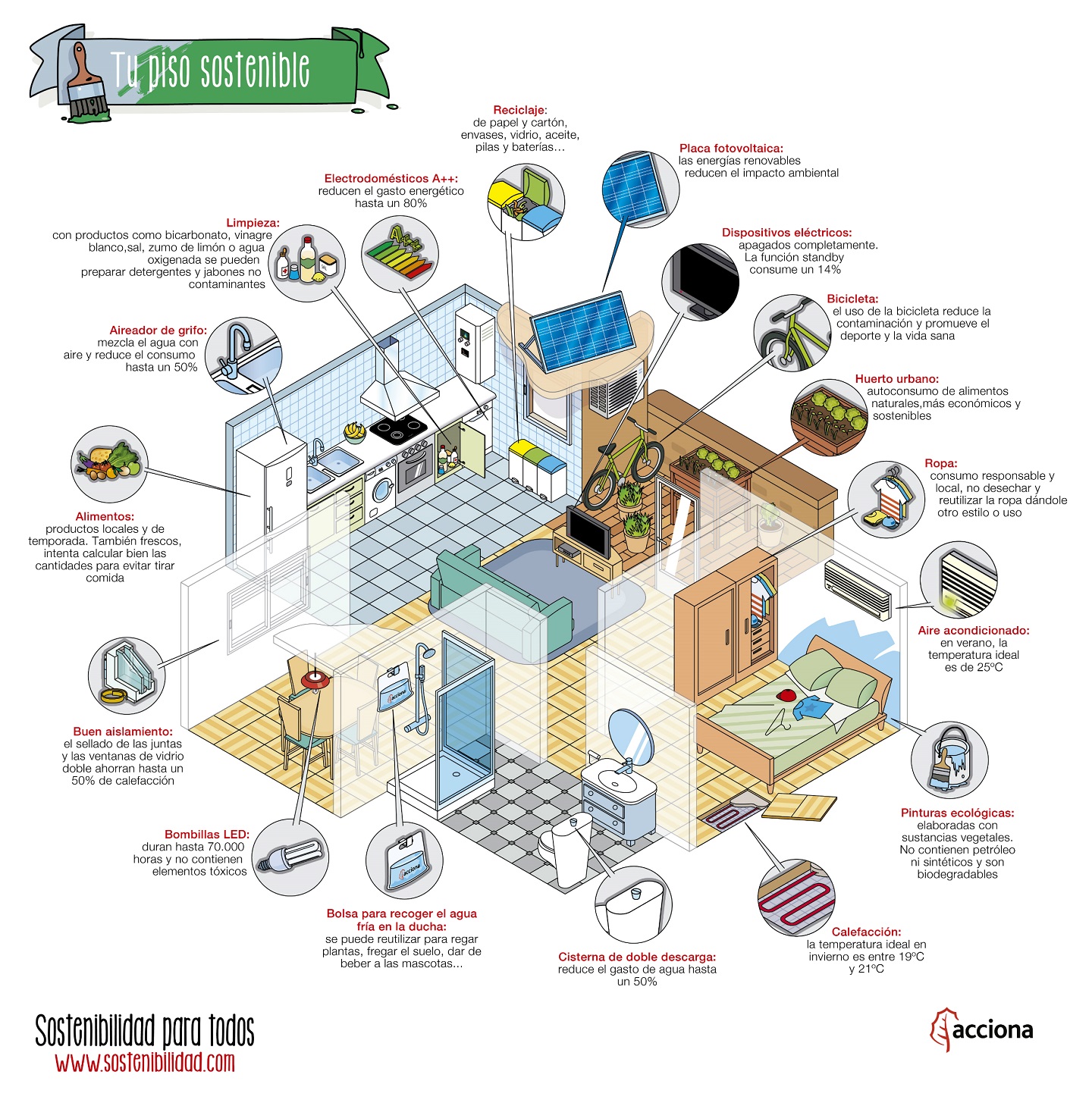 Con unos sencillos gestos y alguna modificación, podemos convertir nuestra vivienda tradicional en una vivienda sostenible. Tomando como referencia un piso o apartamento tradicional, te damos consejos sobre qué acciones puedes llevar a cabo para conseguirlo. Algunos tal vez tendrás que posponerlos para cuando la crisis del coronavirus pase y podamos hacer vida normal, pero la mayoría de los consejos para disfrutar de una vivienda sostenible podrás ponerlos en práctica sin moverte de casa.