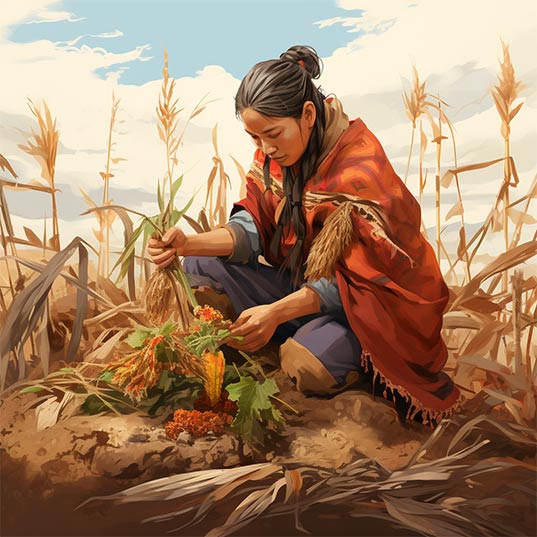 - Agricultura adaptativa y sostenible: los pueblos indígenas son capaces de cultivar en entornos extremos, como en las zonas altas de los Andes o los pastos secos de Kenya. Tal y como recoge la FAO, sus técnicas son muy eficaces. Utilizan las terrazas para evitar la erosión del suelo o los huertos flotantes para aprovechar los campos inundados. Estrategia que podemos adaptar para replicar en aquellos lugares donde los fenómenos meteorológicos son cada vez más extremos por el cambio climático.